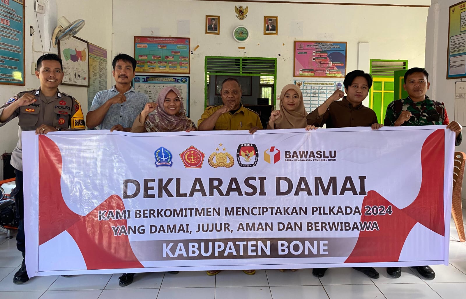 Polresbonetribratanews.com, Bone ~ Awangpone, Pada hari Senin, 2 September 2024, pukul 13.00 WITA, Desa Paccing, Kecamatan Awangpone, Kabupaten Bone, menjadi tempat kegiatan Deklarasi Damai Pilkada Serentak Tahun 2024. Kegiatan ini mengusung tema “Kami Berkomitmen Menciptakan Pilkada 2024 yang Damai, Jujur, Aman, dan Berwibawa,” dan dihadiri oleh berbagai elemen masyarakat setempat.