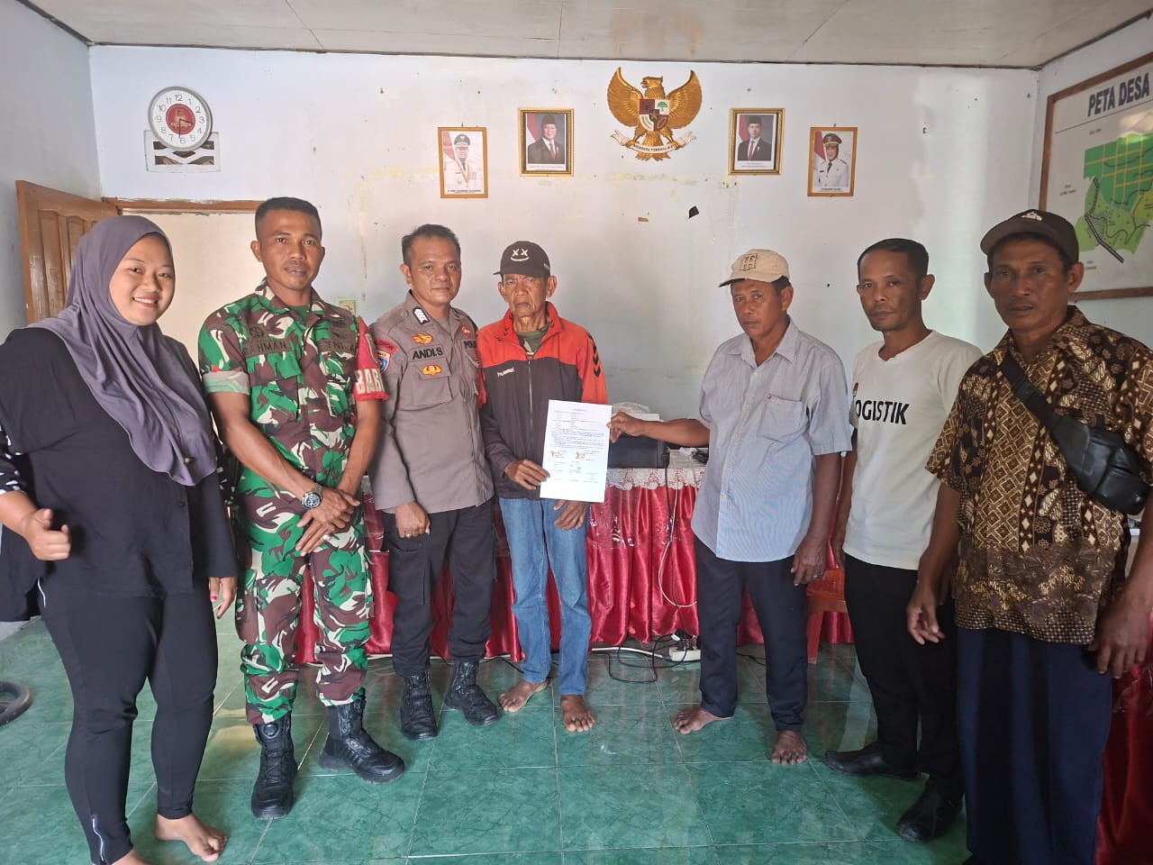 Bhabinkamtibmas Desa Lakukang Polsek Mare Polres Bone Bripka Andi Sudirman bersama Babinsa Koptu Rahman dan Kepala Desa Lakukang Andi Fitriani melakukan mediasi penyelesaian masalah antarwarga terkait terjadinya kasus pengancaman yang bertempat di Aula Kantor desa Lakukang kecamatan Mare Kabupaten Bone, Kamis (04/09/2025).