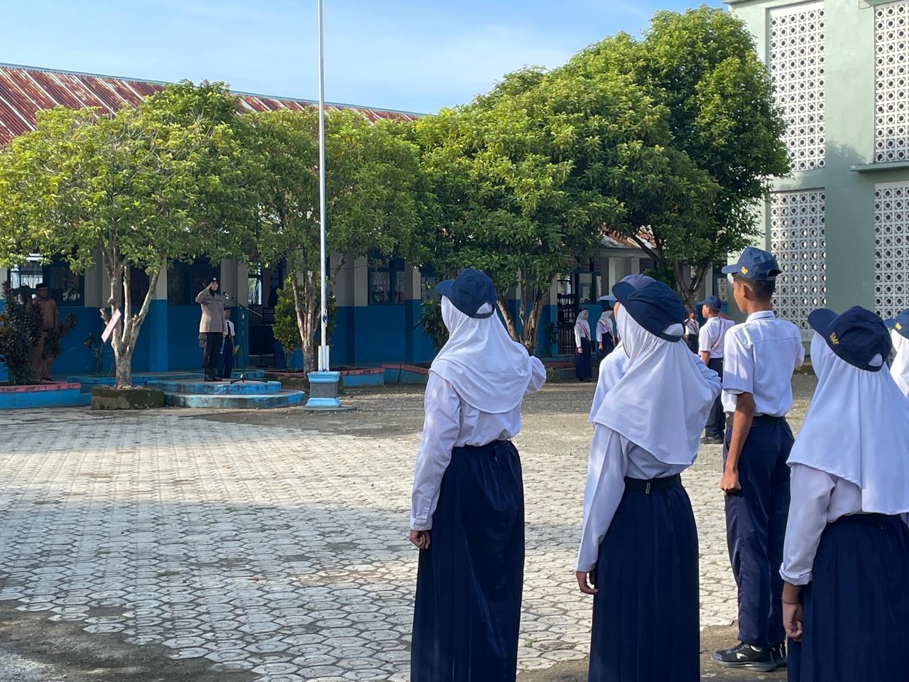 Sibulue (03/11) – Upacara bendera di MTs Pattiro Sompe, Kecamatan Sibulue, berlangsung tertib dan khidmat pada hari Senin, tanggal 3 November 2025. Bripka Sudirman, Bhabinkamtibmas Desa Pattiro Sompe, bertindak selaku Inspektur Upacara (Irup).
