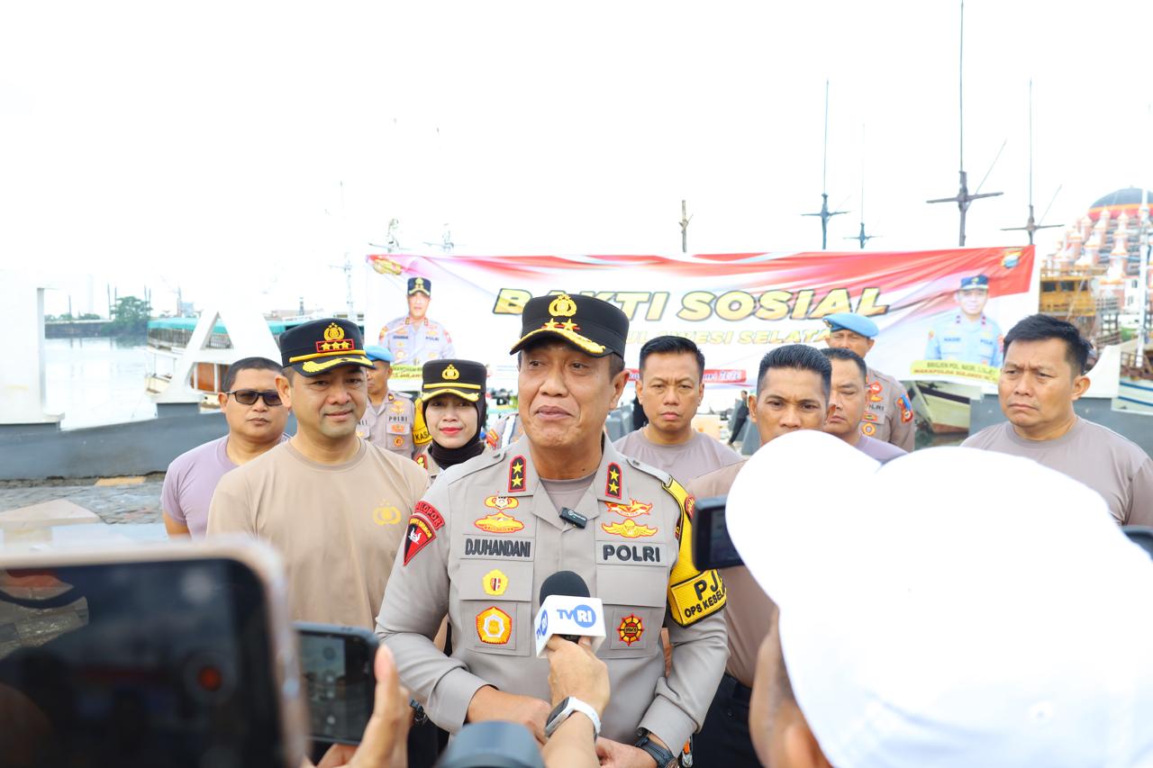 Polda Sulawesi Selatan menggelar kegiatan bakti sosial berupa aksi bersih-bersih di kawasan Anjungan Pantai Losari, Makassar, Jumat (06/02/2026). Kegiatan tersebut dipimpin langsung oleh Kapolda Sulsel Irjen Pol. Djuhandhani Rahardjo Puro, S.H., M.H., sebagai bentuk kepedulian terhadap kebersihan lingkungan.