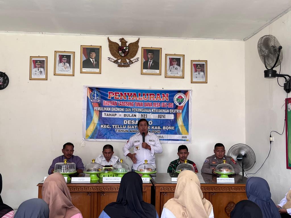 Bertempat di Aula kantor Desa Ulo, Tellu Siattinge, Bone, tepatnya pada hari Rabu (04/06), penyaluran Bantuan Langsung Tunai (BLT) tersebut berlangsung.