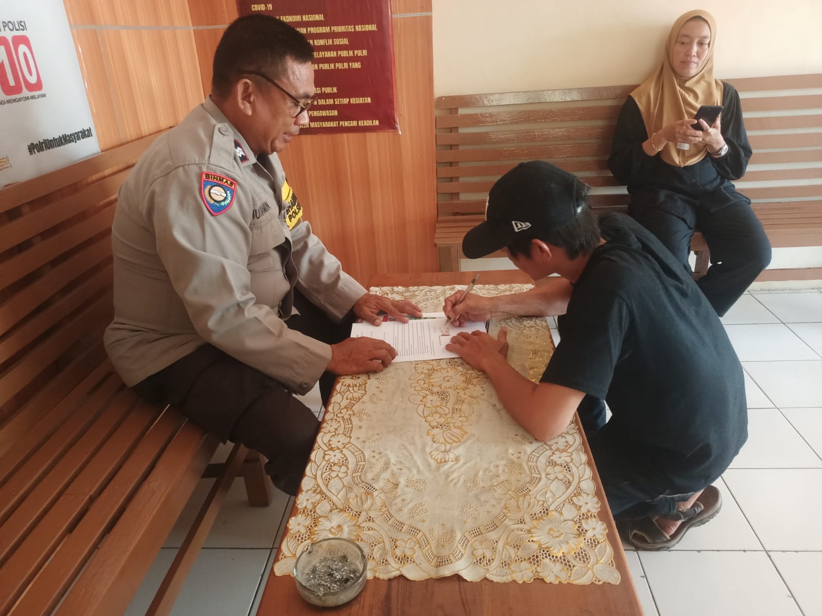Kedua belah pihak membuat surat kesepakatan bersama dihadapan Bhabinkamtibmas dan pemerintah desa.