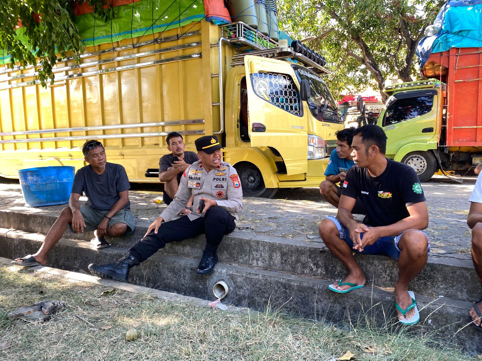 Yang kali ini dilakukan dengan menemui beberapa sopir truck yang sedang duduk menunggu kepastian keberangkatan. Sekaligus memberikan pesan Kamtibmas untuk tidak melakukan hal hal yang dapat memicu kributan. Ungkpanya.
