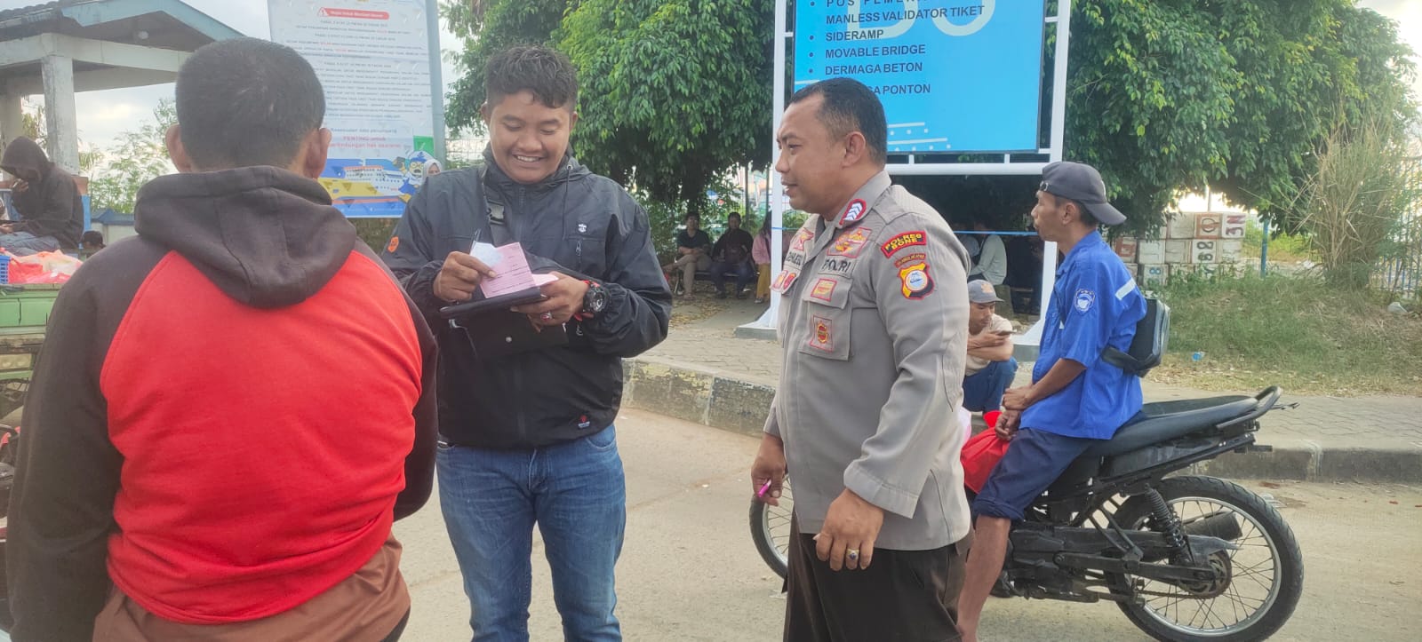 Pastikan situasi tetap kondusif saat keberangkatan kapal, dilaksanakan pengamanan dan pengawasan serta temui Pengguna Jasa dan pengemudi yang akan masuk di Kapal Ferry sesaat sebelum berangkat menuju Pelabuhan Kolaka Sulawesi Tenggara melalui Pelabuhan Bajoe. Kamis (07/08/2025).
