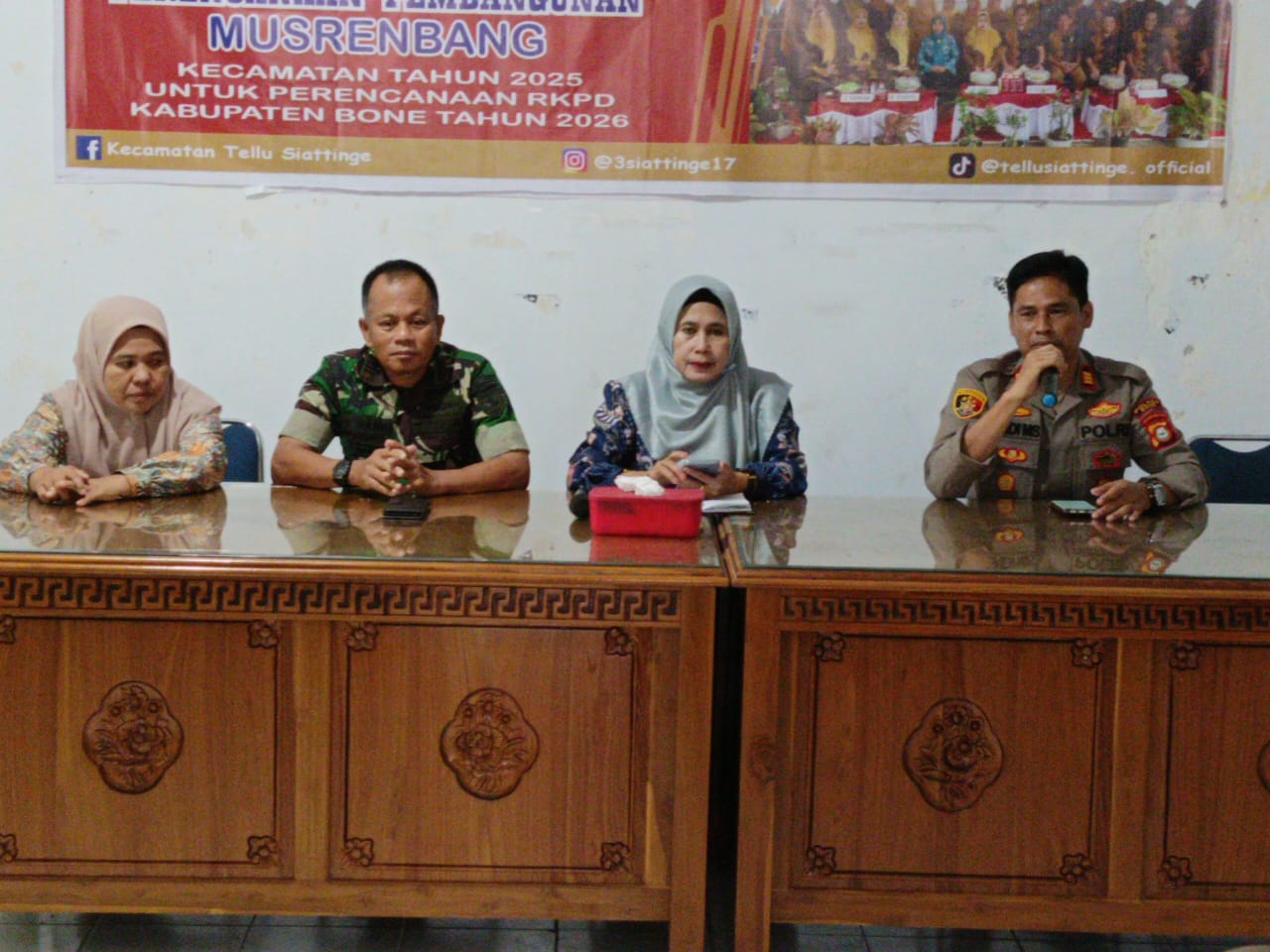 Camat Tellu Siattinge, Dra. Hj. Syamsiar, M.Si. yang memimpin rakor tersebut, dengan menghadirkan Forkopimcam Kecamatan Tellu Siattinge, para Kepala Desa/Lurah sekecamatan Tellu Siattinge, serta instansi terkait lainnya. Salah satu pihak yang turut hadir adalah dari Balai Penyuluh Pertanian (BPP) Kecamatan Tellu Siattinge.