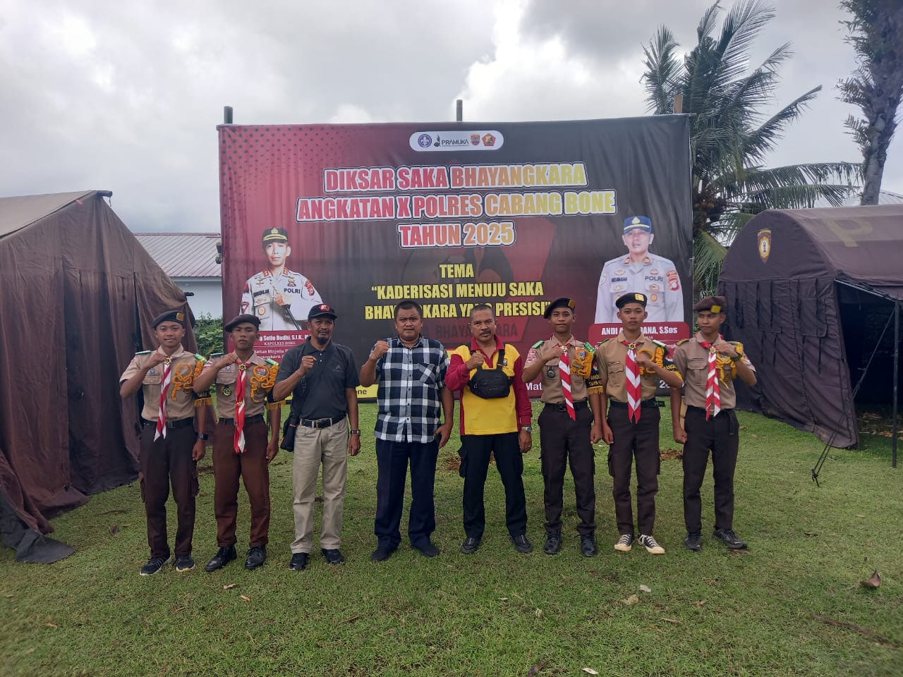 Bone-Patimpeng,Menindak lanjuti permintaan peserta perkemahan yang dirangkaikan penerimaan anggota baru saka Bhayangkara cab.Bone, Kapolsek Patimpeng mendampingi peserta SMAN 19 Bone bersama pembina Bpk.Yusuf, S.Pd dan Alimuddin,S.Pd,Rabu 11/06/2025.