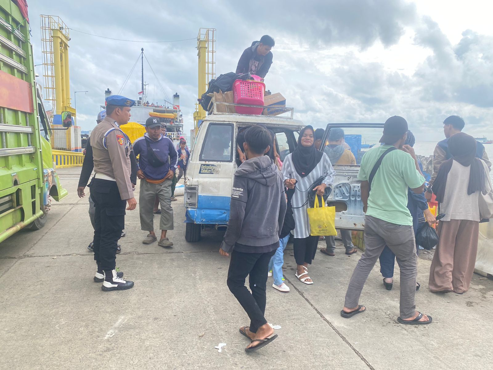 Pastikan situasi tetap kondusif saat keberangkatan kapal, dilaksanakan pengamanan dan pengawasan serta temui Pengguna Jasa dan pengemudi yang akan masuk di Kapal Ferry sesaat sebelum berangkat menuju Pelabuhan Kolaka Sulawesi Tenggara melalui Pelabuhan Bajoe. Minggu, (13/07/2025).