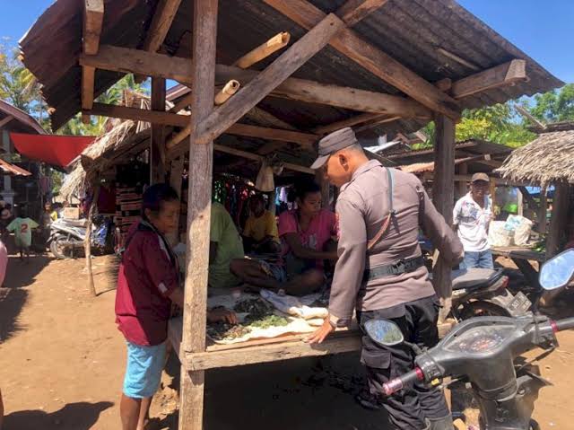 Personel Polsek Mare tampak melakukan pemantauan sekaligus pengaturan arus lalu lintas di sekitar lokasi pasar guna mengantisipasi terjadinya kemacetan maupun potensi gangguan kamtibmas.