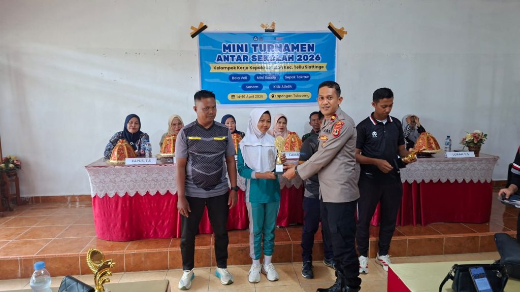polresbonetribratanews.com, Tellu Siattinge – Kapolsek Tellu Siattinge Iptu Bahar, S.Sos., M.Si. menghadiri penutupan Mini Turnamen Olahraga Antar Sekolah Tahun 2026. Kegiatan ini bertempat di Aula Kantor Pemerintah Kecamatan Tellu Siattinge, pada hari Kamis (16/4).