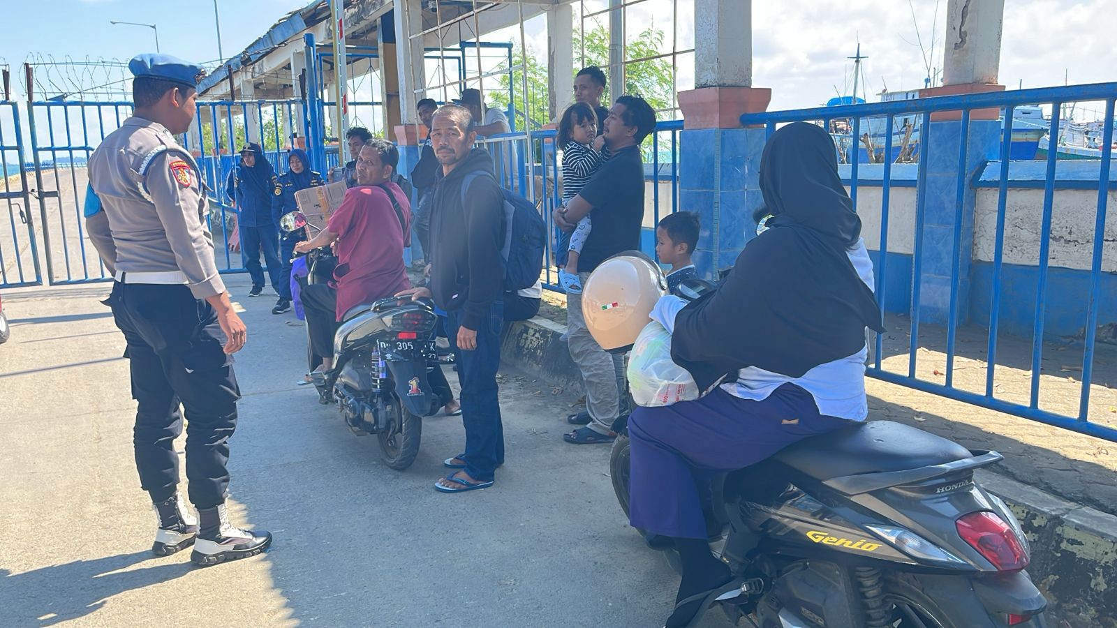 Pastikan situasi tetap kondusif saat keberangkatan kapal, Personil Polsek Kawasan Pelabuhan Bajoe lakukan pengamanan dan pelayanan bersama instansi terkait dan karyawan Kapal.