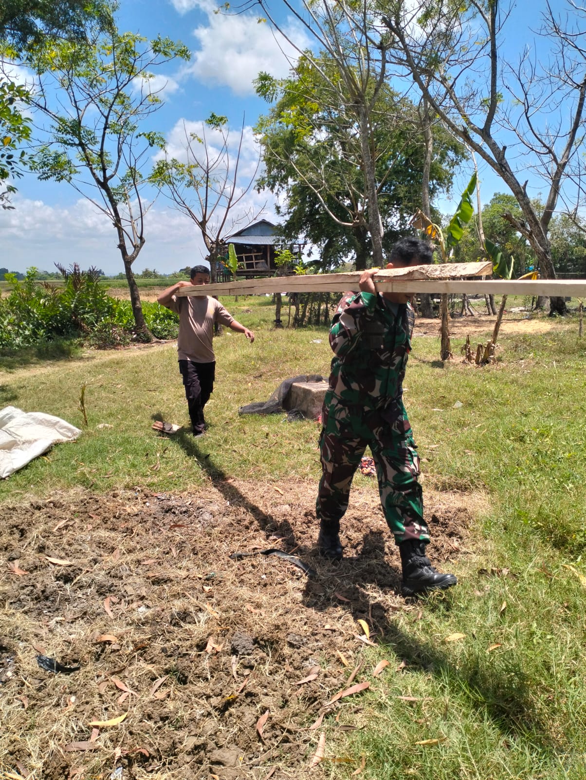 Seperti hari ini, saat warga bergotong royong memperbaiki rumah salah satu warga, kedua aparat ini datang bersamaan. Samsu yang turut menyaksikan momen tersebut bercerita, “Saya sempat melihat, Pak Babinsa (Serka Dwi Widodo, red.) hanya mengucapkan kata ‘bagaimana?’, langsung dijawab ‘yok’ oleh Pak Bhabin (Bripka Sumarlin, red.). Mereka langsung mengangkat beberapa lembar papan dan balok.”