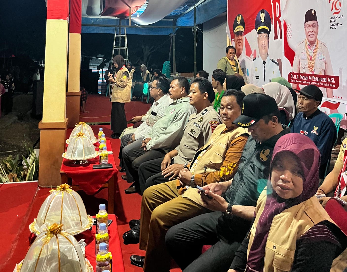 Polresbonetribratanews.com, Bone ~ Awangpone, Dalam rangka memperingati Hari Pramuka ke-63 dan Hari Ulang Tahun (HUT) Proklamasi Kemerdekaan Republik Indonesia ke-79, Kecamatan Awangpone, Kabupaten Bone, menggelar acara “Pembukaan Perkemahan dan Pentas Seni” di Bumi Perkemahan Kelurahan Macope. Acara yang dimulai pada hari Selasa tanggal 13 Agustus 2024, pukul 20.30 WITA ini dibuka secara resmi oleh Camat Awangpone, A. Kamaluddin, SP., M.Si.