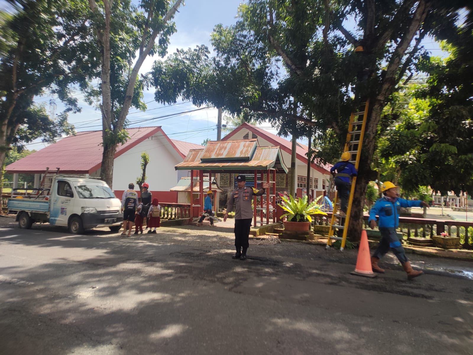 Penebangan pohon ini dilakukan sebagai langkah antisipasi terhadap potensi bahaya yang dapat ditimbulkan, seperti gangguan jaringan listrik atau risiko pohon tumbang yang menghambat lalu lintas. Dengan kehadiran personel kepolisian, arus lalu lintas tetap berjalan tertib dan aman, mencegah kemacetan serta potensi kecelakaan di lokasi.