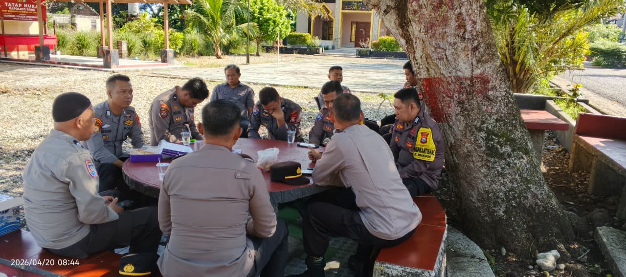 Polresbonetribratanews.com, Bone ~ Awangpone, Senin, 20 April 2026 – Dalam rangka meningkatkan kinerja dan profesionalisme anggota, Kepolisian Sektor (Polsek) Awangpone, Polres Bone, melaksanakan kegiatan Analisa dan Evaluasi (Anev) rutin terhadap pelaksanaan tugas. Kegiatan ini dipimpin langsung oleh Kapolsek Awangpone, AKP Supriyadi, S.Sos, M.Si., pada hari Senin tanggal 20 April 2026, sekitar pukul 08.30 WITA, bertempat di Mapolsek Awangpone.
