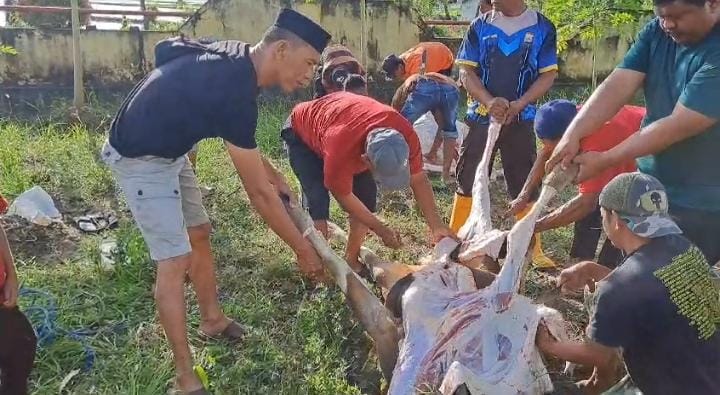 Sibulue, 18 Juni 2024 – Dalam rangka merayakan Idul Adha, Polsek Sibulue menyelenggarakan kegiatan penyembelihan empat ekor sapi qurban. Sapi-sapi tersebut merupakan hasil qurban dari personil Polsek Sibulue dan Bhayangkari. Kapolsek Sibulue, Iptu Arfah, mengungkapkan bahwa kegiatan ini merupakan inisiatif dari seluruh personil Polsek dan telah direncanakan sejak tahun lalu.