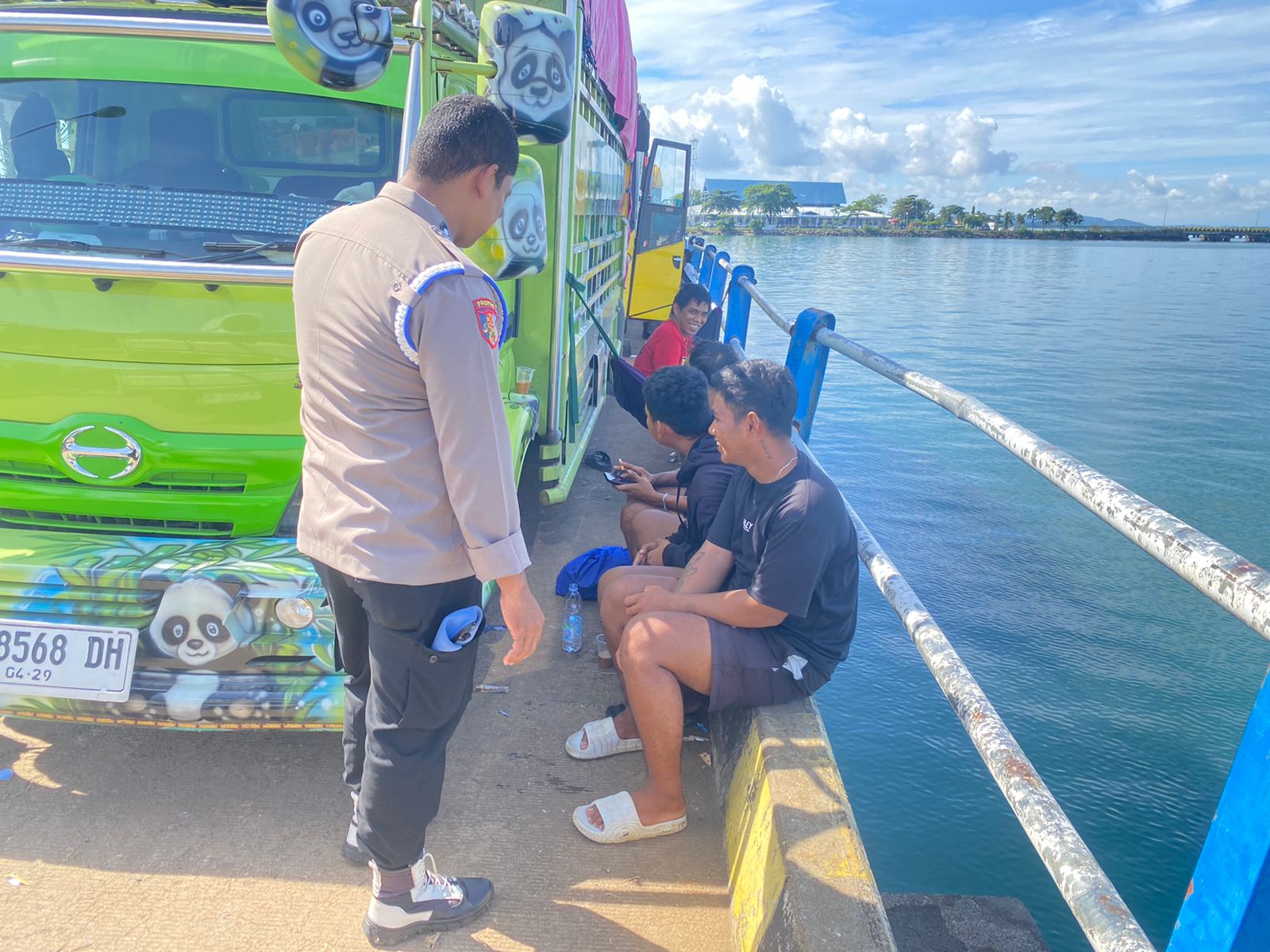 Temui Sopir Truck yang sedang menunggu keberangkatan kapal di Pelabuhan Bajoe, Personil Polsek Kawasan Pelabuhan Bajoe Polres Bone bersilaturahmi dan berikan pesan serta edukasi keselamatan. Kamis ( 23/01/2025).