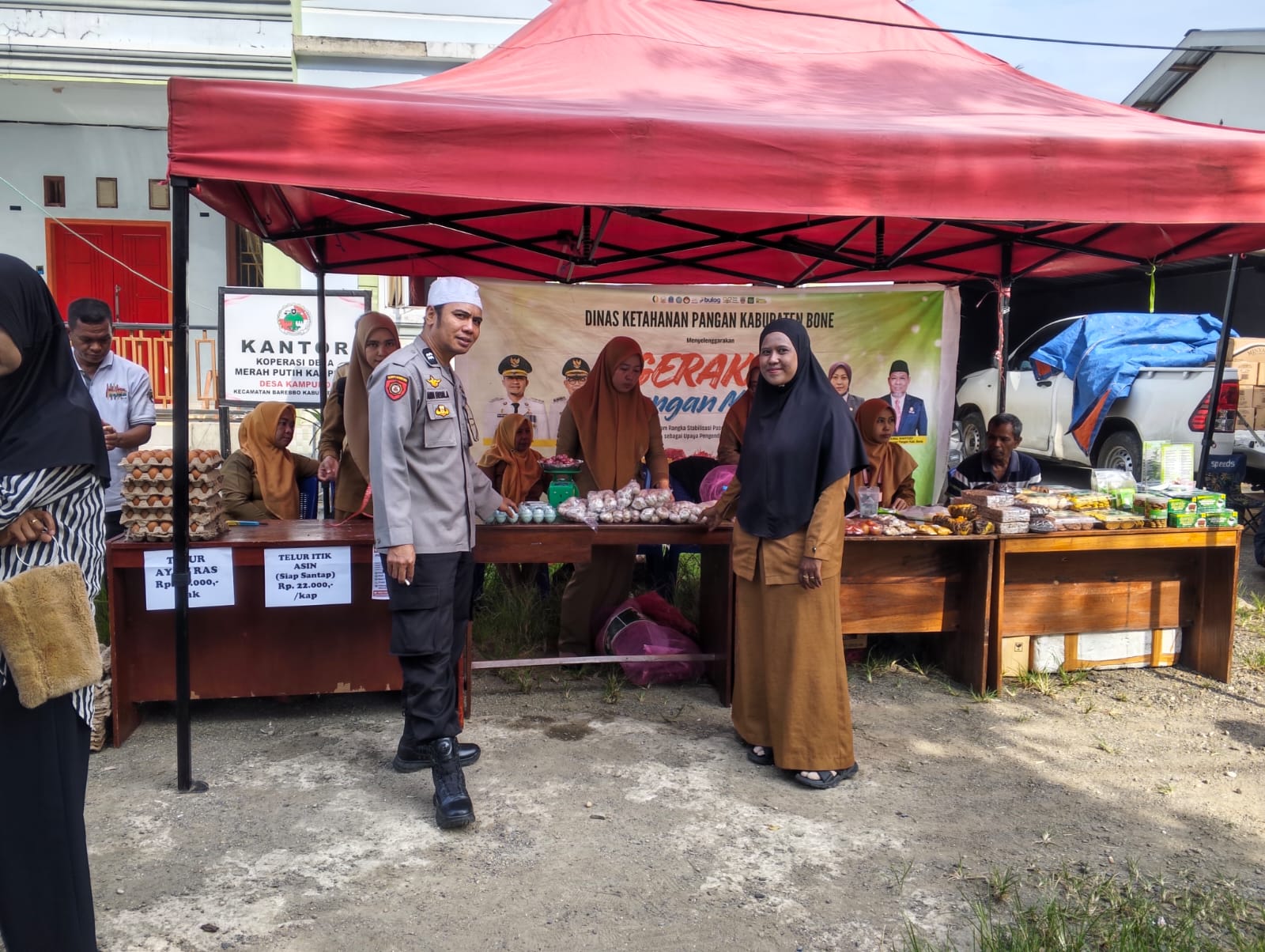 Bone – Apala Dalam rangka mendukung stabilisasi pasokan dan harga pangan di daerah, Bhabinkamtibmas Desa Kampuno, Kecamatan Barebbo, Aiptu Andi Faesal, A.SH., melaksanakan kegiatan pemantauan Gerakan Pangan Murah yang berlangsung di halaman Koperasi Merah Putih Desa Kampuno.