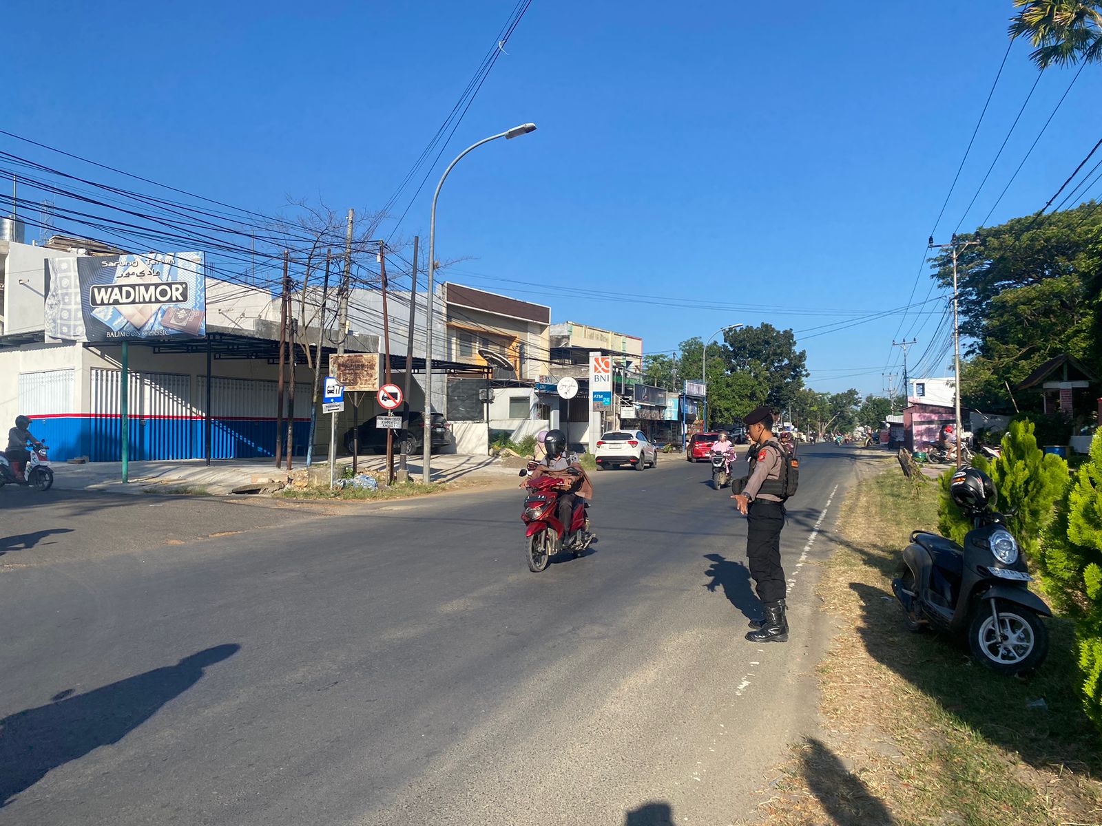 http://Polresbonetribratanews.com Personel Sat Samapta Polres Bone Polda Sulawesi Selatan laksanakan pengaturan pagi dan himbauan lalu lintas di Kota Watampone, Senin (22/09/2025).