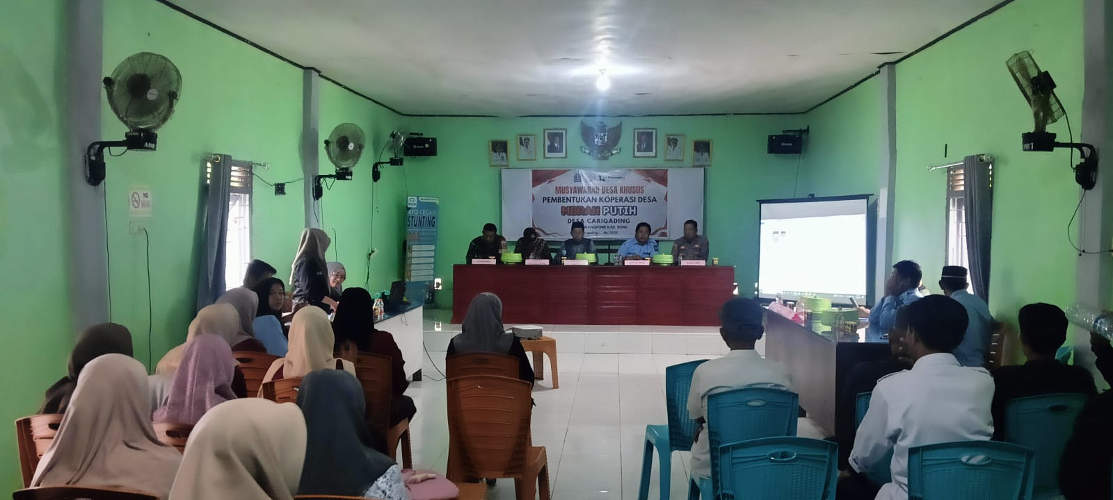 Pada hari Jumat, 23 Mei 2025 sekitar pukul 09.00 WITA, bertempat di Aula Kantor Desa Carigading, Kecamatan Awangpone, Kabupaten Bone, telah berlangsung kegiatan Musyawarah Desa Khusus dengan agenda pembentukan Koperasi Merah Putih. Kegiatan ini diselenggarakan sebagai bentuk inisiatif Pemerintah Desa Carigading dalam mengembangkan potensi ekonomi masyarakat melalui penguatan kelembagaan koperasi sebagai wadah usaha milik bersama yang dikelola secara partisipatif dan berkelanjutan.