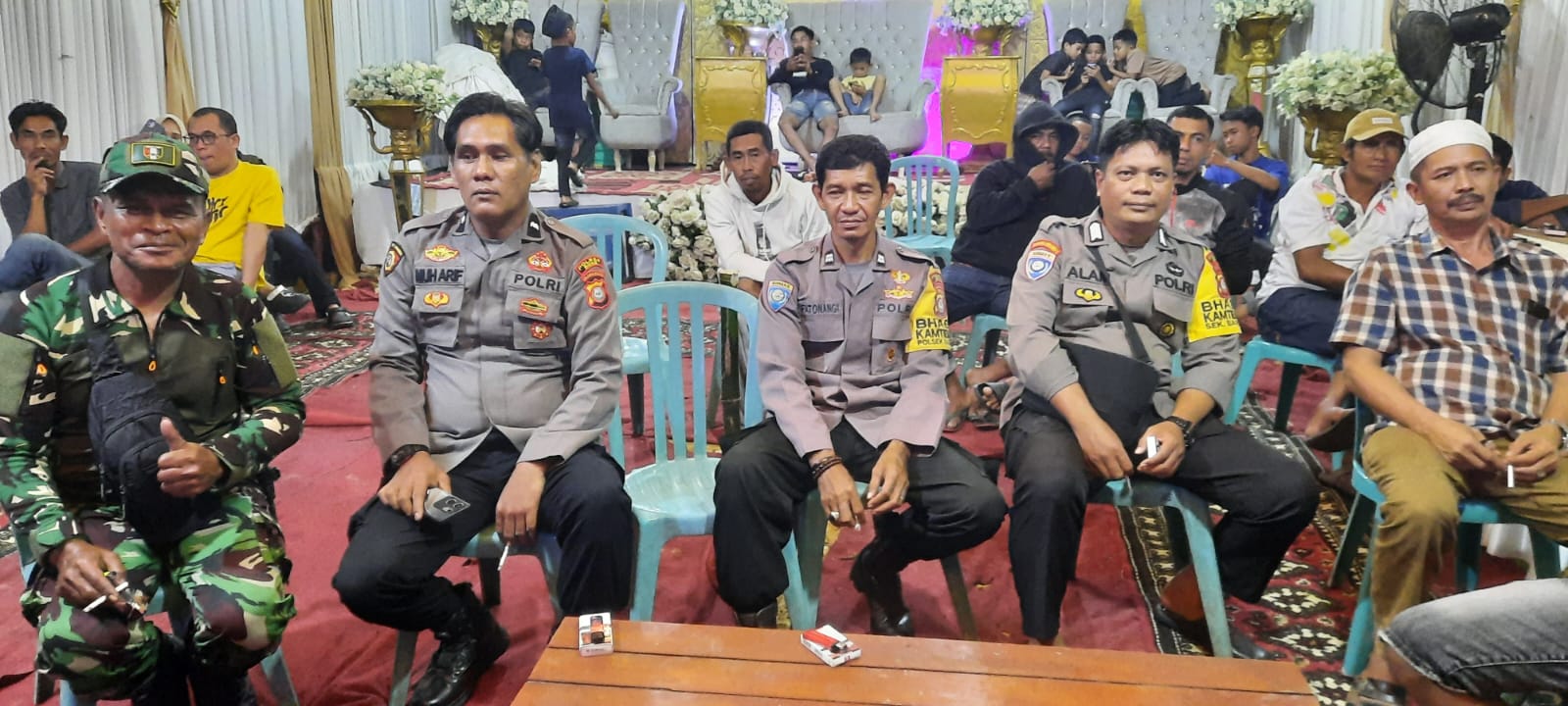 Kehadiran polisi dan TNI di acara tersebut bertujuan untuk memastikan situasi tetap kondusif dan meredam potensi gangguan keamanan. Dalam pengamanan pesta pernikahan tersebut, personil Polsek Barebbo hadir melakukan pengamanan di sekitar panggung hiburan serta berbaur dengan warga sambil menyapa dan berdialog .
