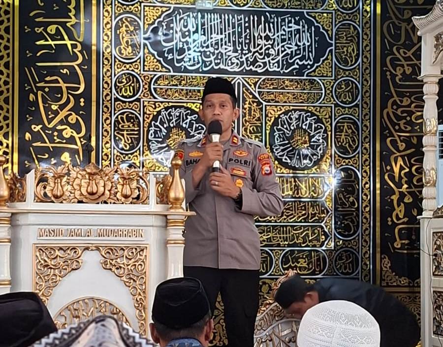 Iptu Bahar pun memperkenalkan dirinya selaku Kapolsek yang baru. Ia juga menyampaikan kepada para jamaah yang hadir untuk dapat bersama-sama menjaga keamanan dan ketertiban lingkungan sekitar.