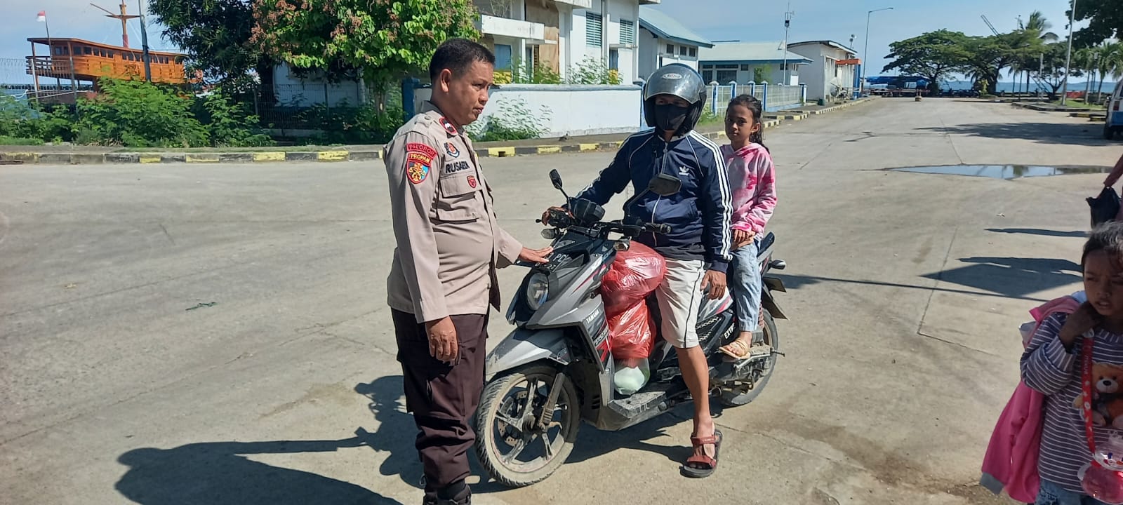 Dilaksanakan oleh Personil Jaga Mako Polsek Kawasan Pelabuhan Bajoe Polres Bone Aipda Rusaedi sesaat sebelum keberangkatan kapal.