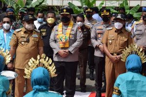polresbonetribratanews.com – Wakapolda Sulawesi Selatan (Sulsel) Brigjen Pol Chuzaini Andi Pattopoi meninjau langsung pelaksanaan vaksinasi masyarakat Bone yang digelar secara serentak di 27 kecamatan, Wakapolda Sulsel hadir bersama rombongan dan disambut oleh Bupati Bone Dr.H.Andi Fahsar M. Padjalangi, M.Si., Kapolres Bone AKBP Ardyansyah,S.I.K.,M.Si. bersama Forkopimda Bone, tokoh masyarakat, tokoh agama dan toko pemuda di halaman Kantor Camat Lamuru, Selasa (26/10/2021).