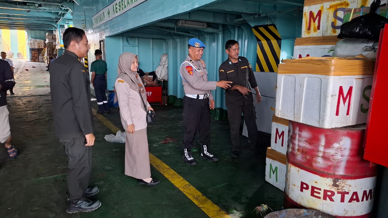 Pastikan jenis muatan dalam kapal Ferry sesuai prosedur dan tidak ada pelanggaran jenis muatan / muatan illegal melalui Pelabuhan Bajoe, Personil Polsek Kawasan Pelabuhan Bajoe Polres Bone lakukan Pemeriksaan. Jumat (27/06/2025).
