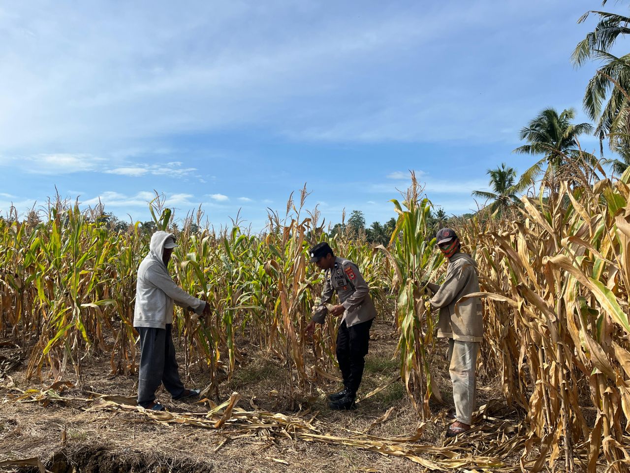 Dukung Ketahanan Pangan, Polisi Penggerak Aipda Heriawan Astaman Kawal Panen Jagung Warga